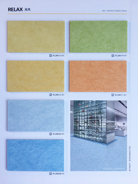 LG Hausys品牌嵐風(fēng) (RELAX1.8)無甲醛,環(huán)保健康,不含鄰苯二甲酸酯類增塑劑和重金屬,不添加任何回收材料;原料采用環(huán)境友善型可再生資源;添加抗菌劑。出色的防滑性能,經(jīng)濟(jì)耐污、易清理、施工簡單、使用壽命長。適用場所:教育空間、連鎖店、辦公室。