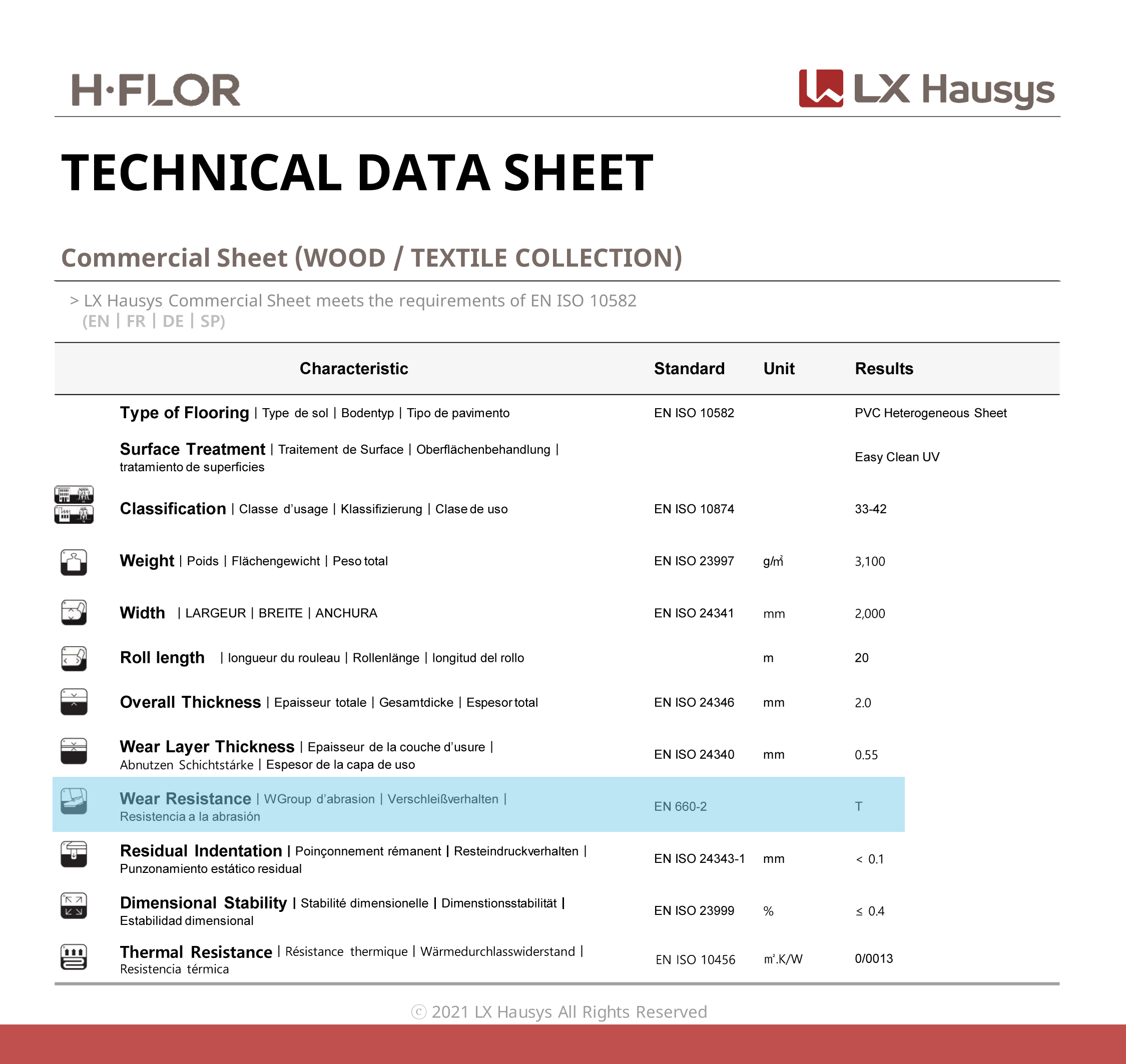 通過實踐比較來看,采用EN660-2標準的FRICK-TABER落砂磨耗法在原理上更接近PVC地板在使用中的磨損狀況,使得耐磨性的分級結果更加穩定和具有可比性。