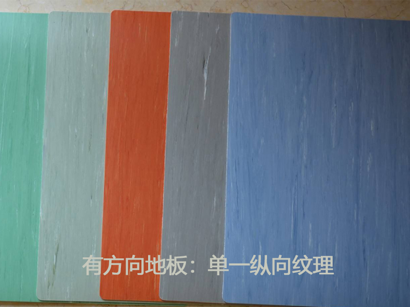一、花紋的差別:有方向同質透心地板從花色是豎條狀分布,即是拉花形,有很明顯的方向性,鋪裝是只能一個方向鋪裝,如調換方向就有很明顯的花色錯位和色差。而無方向型通透地板表面花色是密密麻麻的不同色澤的碎花狀分布,沒有明顯的方向感,不同方向鋪裝也不會有明顯的差別,盡量使用相同方向鋪裝。