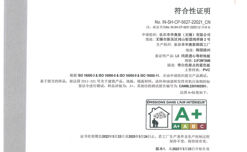 近日LX Hausys成功取得法國A+等級(jí)環(huán)保認(rèn)證。此次認(rèn)證的產(chǎn)品由上海SGS通用標(biāo)準(zhǔn)技術(shù)服務(wù)公司進(jìn)行檢測,報(bào)告權(quán)威,國際認(rèn)可。
