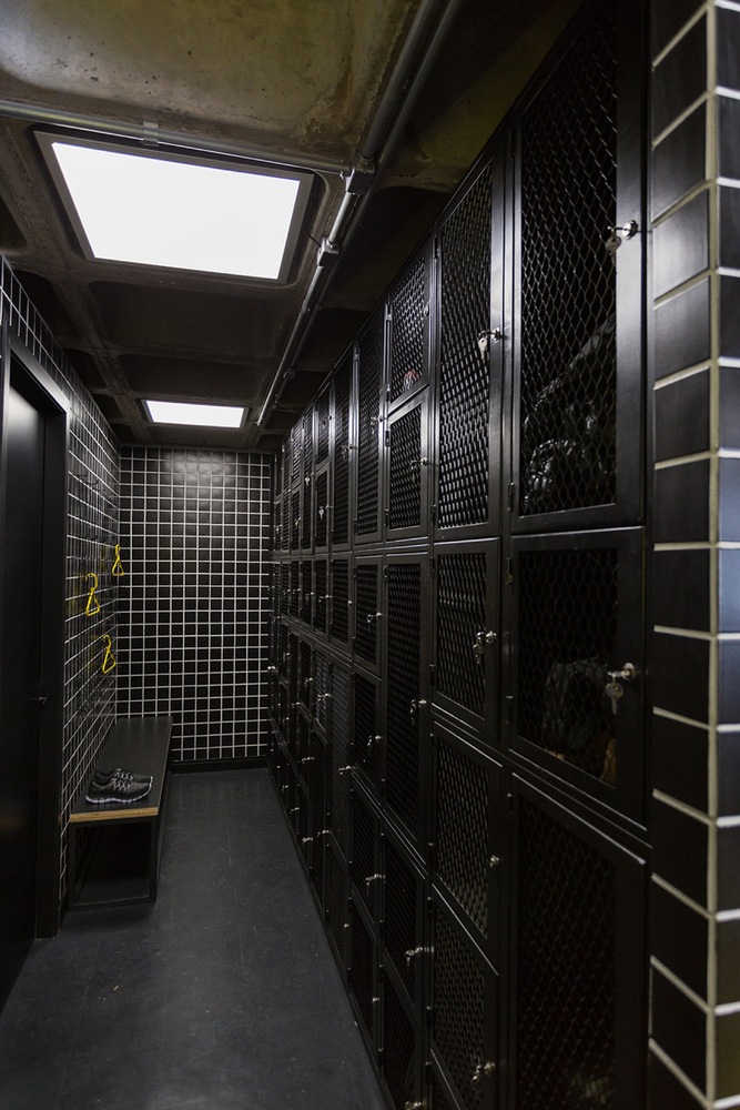 這個設計方案實現了整體效果最大程度的一致性。同時各個區域的劃分也是必要的:接待區和休息區、更衣室、熱身區和訓練區——通過PVC地板顏色的區分設計來實現。休息室和接待區使用了更強烈的標記:地板、墻壁和天花板被漆成黃色。這個想法是創造一個生活空間、 一個會員可以休息的區域,更重要的是,在訓練時間之外進行社交。